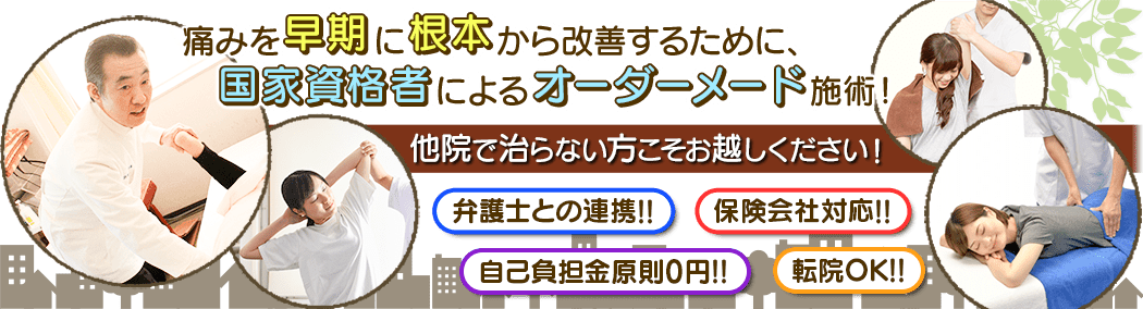 後遺症を残さないためには、事故に遭った後、なるべく早い段階で施術を受けることが大切です。